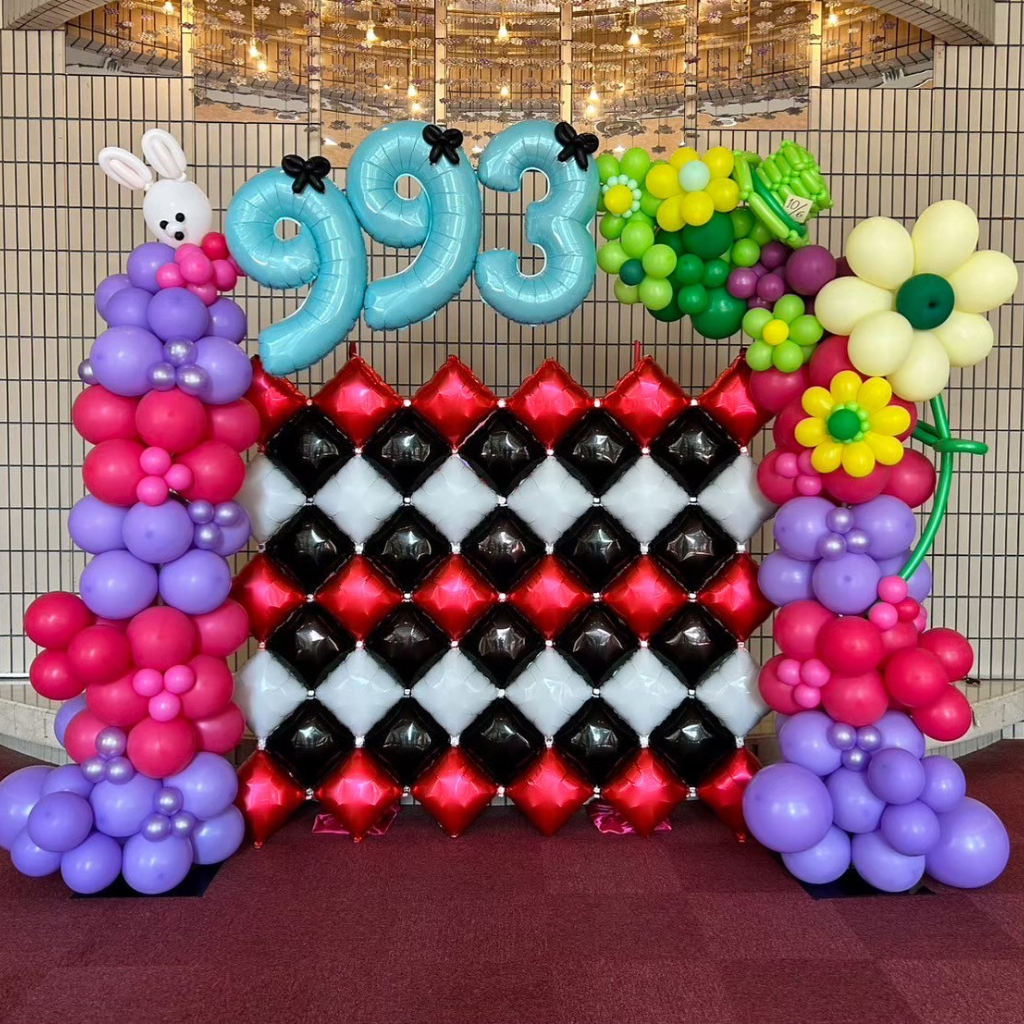 ダンスチームのイメージカラーと「不思議の国のアリス」の世界観を融合させた、オリジナルのバルーン装飾です。多色使いでありながら、ご希望のイメージをまとめ上げ、ユニークな空間を創り出しました。